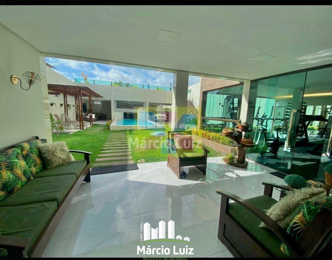 No pavimento térreo, um elegante terraço, espaço reservado para academia, sala de jantar integrada à cozinha e uma suíte com closet garantem o máximo de funcionalidade e conforto, além de área de serviço e banheiro adicional. Já no primeiro pavimento, há uma ampla sala de estar com janelas de vidro com vista para o jardim, banheiro social, um quarto social, escritório e duas suítes, ambas com closet. Essa casa combina modernidade, estilo e um projeto voltado para o bem-estar em um dos melhores pontos do litoral.