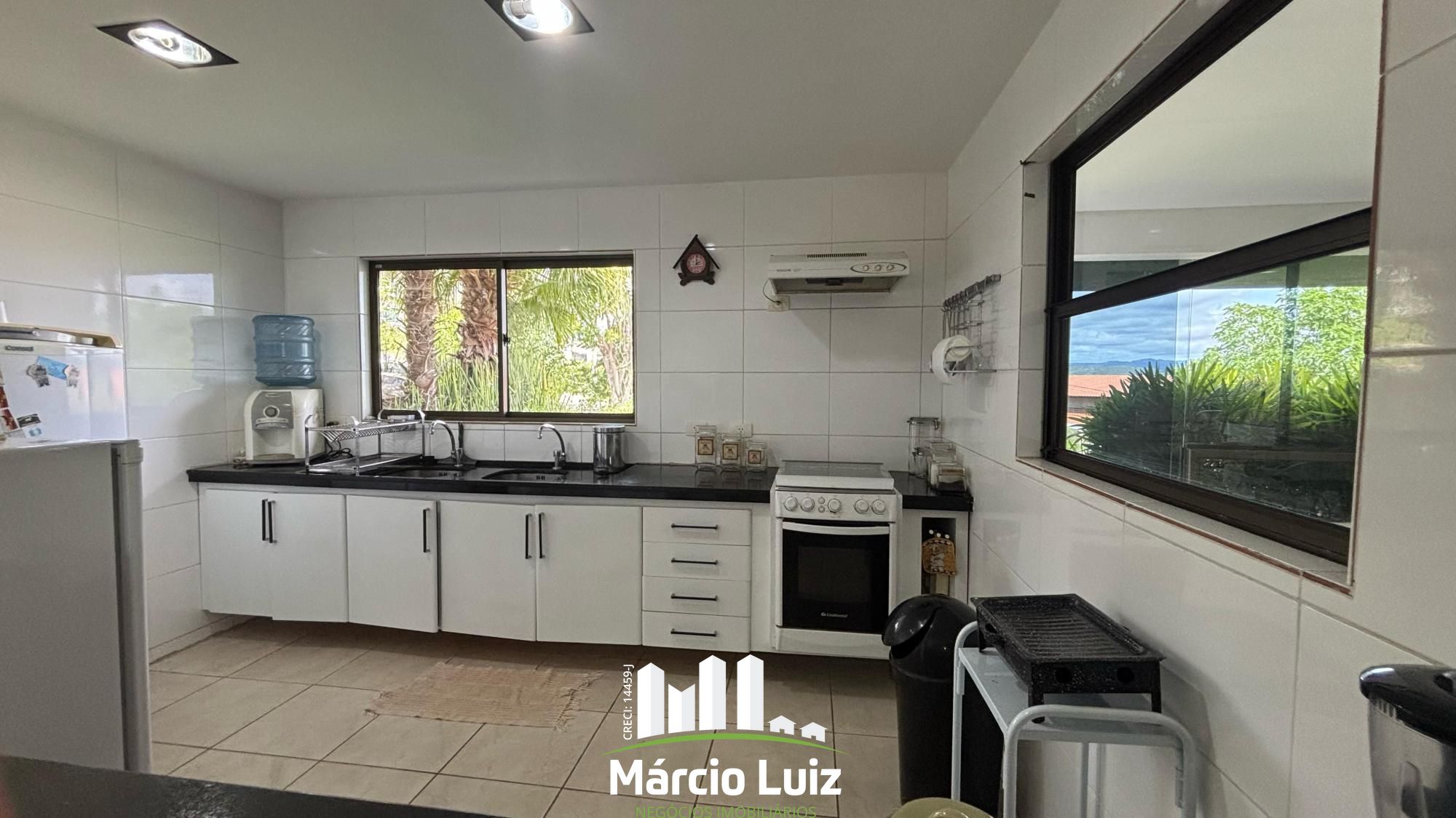 A cozinha funcional e bem distribuída atende perfeitamente às necessidades do dia a dia, contando com fácil acesso às áreas sociais e de serviço. O imóvel possui ainda um banheiro social e quatro suítes aconchegantes, ideais para garantir conforto e privacidade a toda a família e convidados.