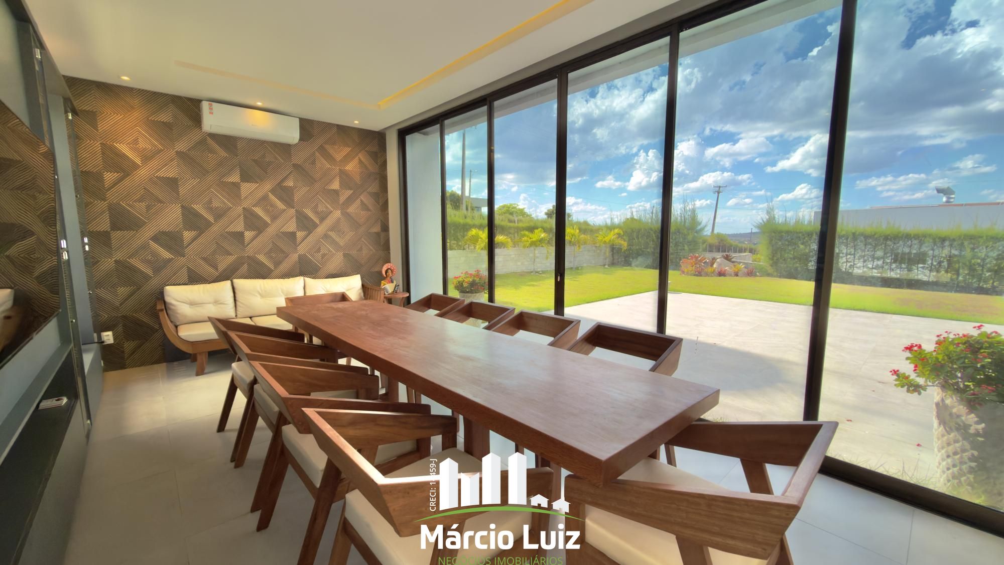 Logo na chegada, o lindo jardim valoriza a fachada e transmite a sensação de acolhimento e tranquilidade. A ampla garagem com capacidade para até 7 veículos é um diferencial importante, trazendo praticidade para o dia a dia e comodidade para receber convidados. O terraço em formato “U” é um verdadeiro convite ao convívio, oferecendo um espaço confortável e ventilado, ideal para momentos de descanso ou encontros com família e amigos.